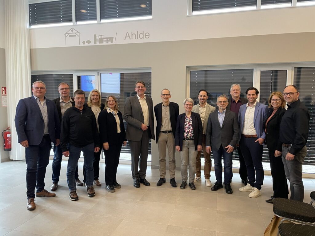 Mit einer gut besuchten Abschlussveranstaltung im Rathaus Emsbüren ist das landkreisübergreifende Projekt „Nachhaltiges Wassermengenmanagement” rund um den Ahlder und Engdener Bach nach zweieinhalb Jahren erfolgreicher Arbeit zu Ende gegangen. Stephan Westhuis vom federführenden Vechteverband betonte die gemeinsame Verantwortung für eine zukunftsfähige Wasserbewirtschaftung und würdigte das Engagement aller Beteiligten. In mehreren Fachvorträgen wurde die Dringlichkeit deutlich: Godehard Hennies vom Wasserverbandstag forderte entschlossenes Handeln und sprach sich für größere Handlungsspielräume bei Maßnahmen zum Wasserrückhalt aus. Er sieht ein übergeordnetes öffentlichen Interesse. Die Ergebnisse präsentierten Dr. Stephan Hannappel (HYDOR) und Katja Eulitz (DHI).